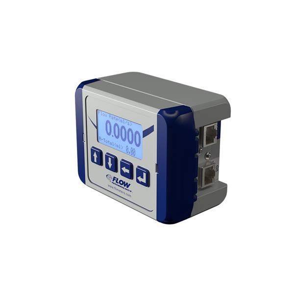 The QRE remote electronics interfaces with the QRT ultrasonic sensor. The QRE provides 4-20mA, frequency, and Modbus RTU outputs, and the user connects to the QRE via a Modular Jack 8P8C (Ethernet-Style) connectors. The integrated display enables the user to display process variables and modify configuration parameters as required.